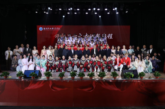为深入学习宣传贯彻党的二十大精神,全面落实学校第三次党代会精神,积极营造健康向上的校园文化氛围,集中展现学校师生良好的精神风貌,4月23日晚,由人文与音乐学院承办的“颂歌二十大,奋进新征程”文艺汇演在我校雨花校区大礼堂举行。湖南省人大常委会原副主任、湖南省文化艺术基金会主席肖雅瑜出席活动,学校党委书记杨翠明、校长蒋阳飞及其他班子成员,十余家招聘企业负责人,学校副处级以上干部及各二级学院师生代表现场观看表演。