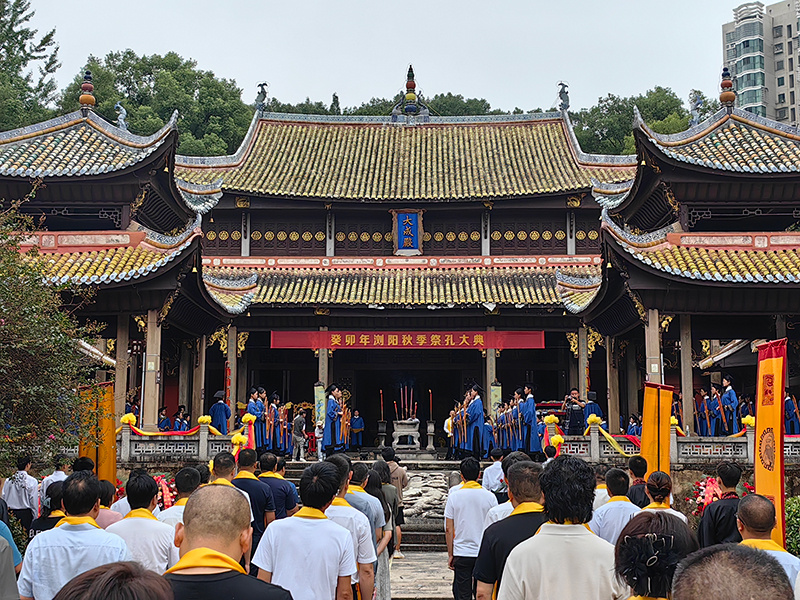 9月28日,我校人文与音乐学院商代大铙古乐团师生赴浏阳参加癸卯年秋季祭孔大典,纪念我国伟大的思想家、教育家、儒家学派创始人孔子诞辰2574周年。