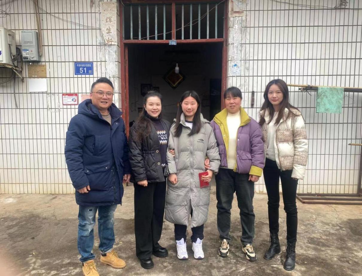 2024年2月25日下午在人文与音乐学院党总支书记刘立专书记的统一部署下,学院党总支副书记贺继、团总支书记陈骜、音表3222班辅导员熊程怡一行人驱车来到了位于湖南省长沙市浏阳市金刚镇李败社区优秀困难学生陈丽娜同学家里。深入了解学生的家庭生活情况,解决学生在接受教育中遇到的困难,反馈孩子在校的现状,做好家校沟通,制定有针对性的措施并给他们实际的帮扶,送去慰问金1000元以资鼓励。
