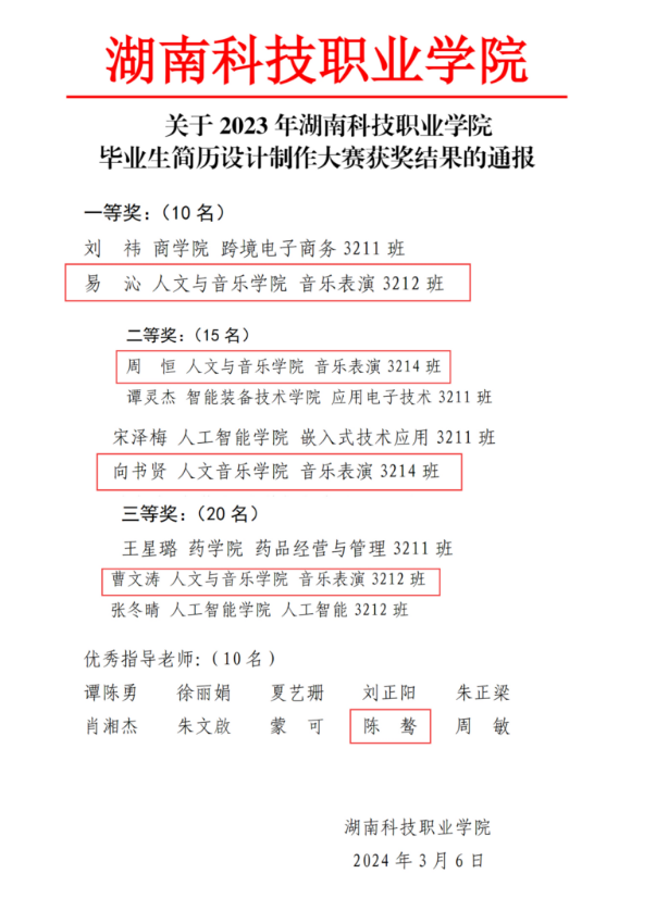 同时,陈骜老师凭借其在指导学生过程中的专业性和敬业精神,荣获“人文与音乐学院优秀指导老师”称号。这是对陈老师辛勤工作的肯定,也是对我院教学质量的认可。