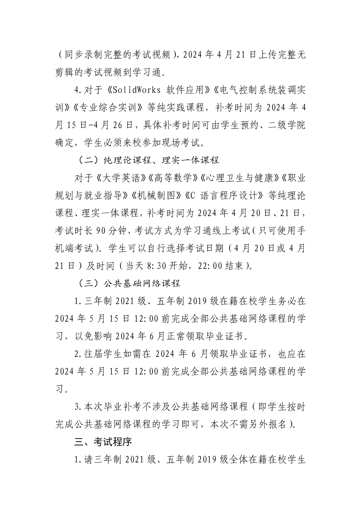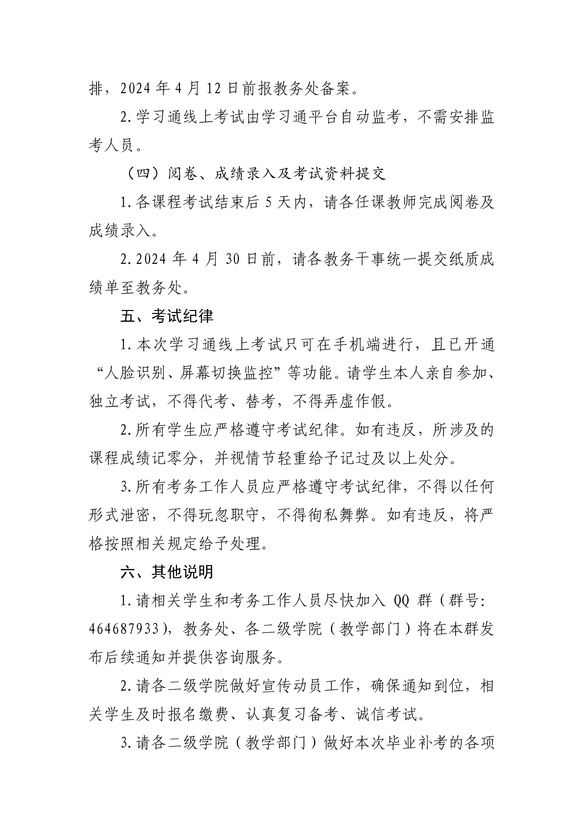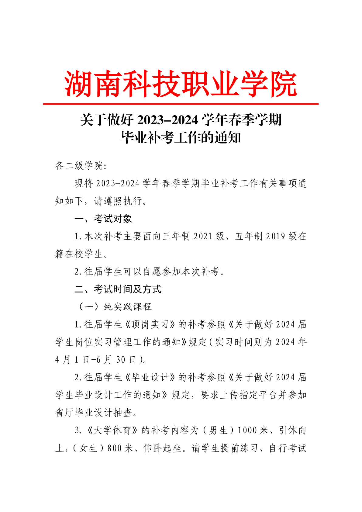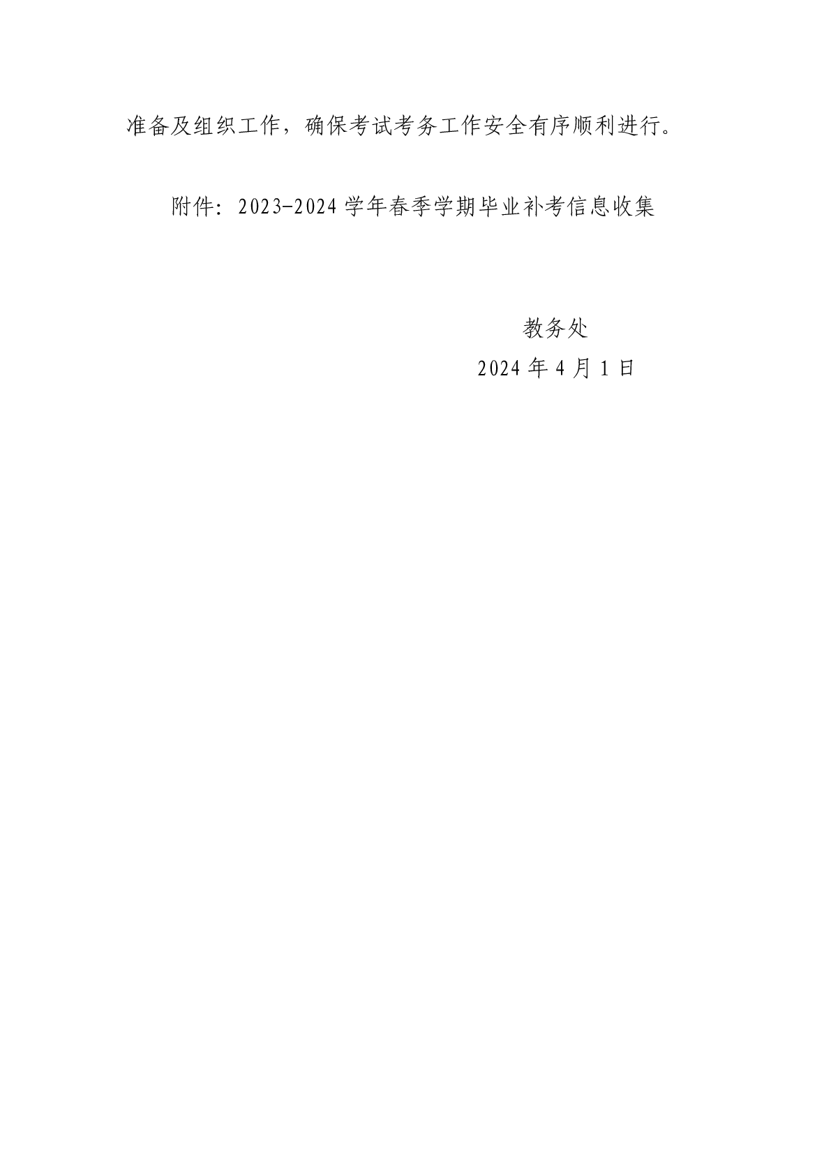 关于做好 2023-2024 学年春季学期 毕业补考工作的通知