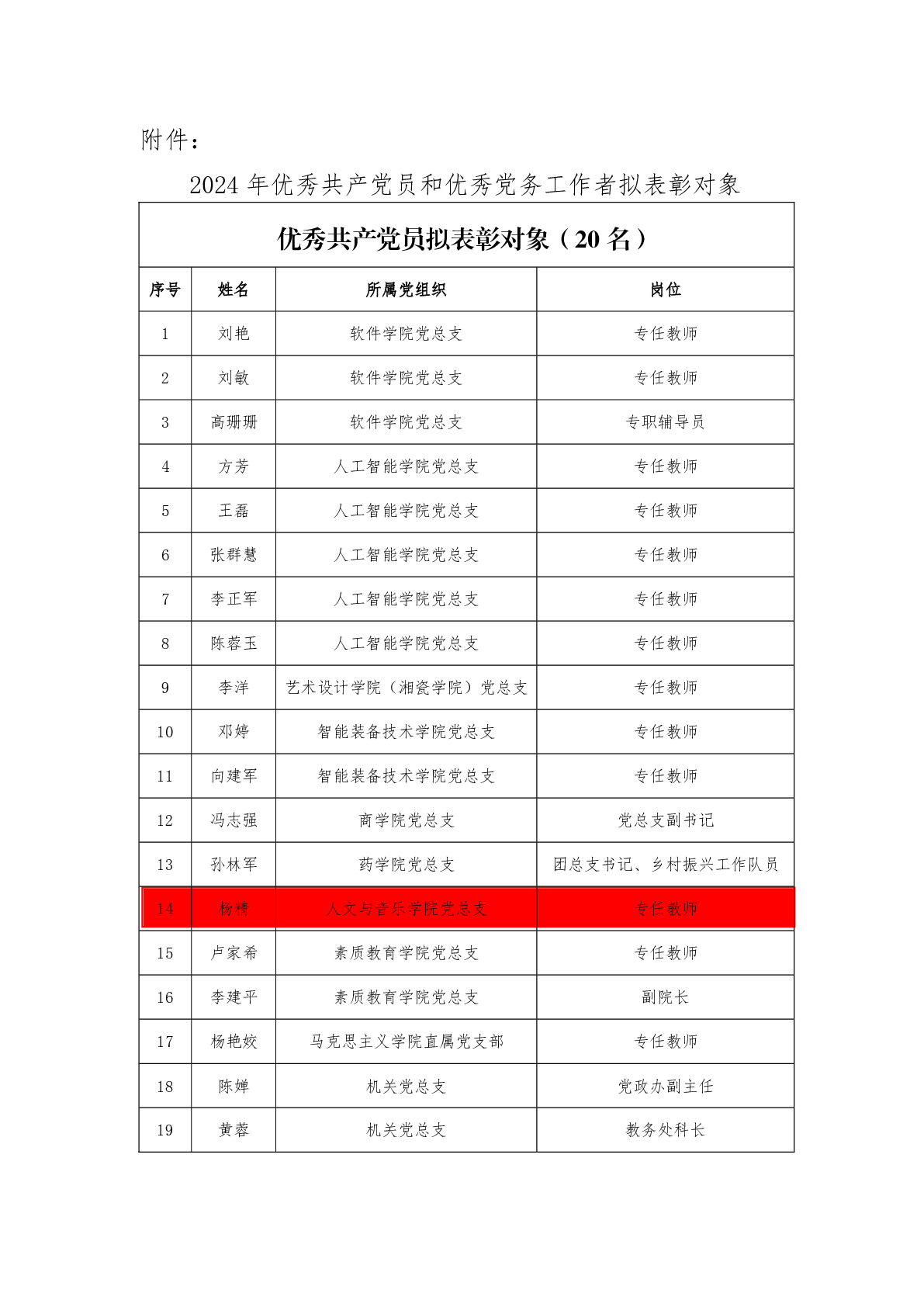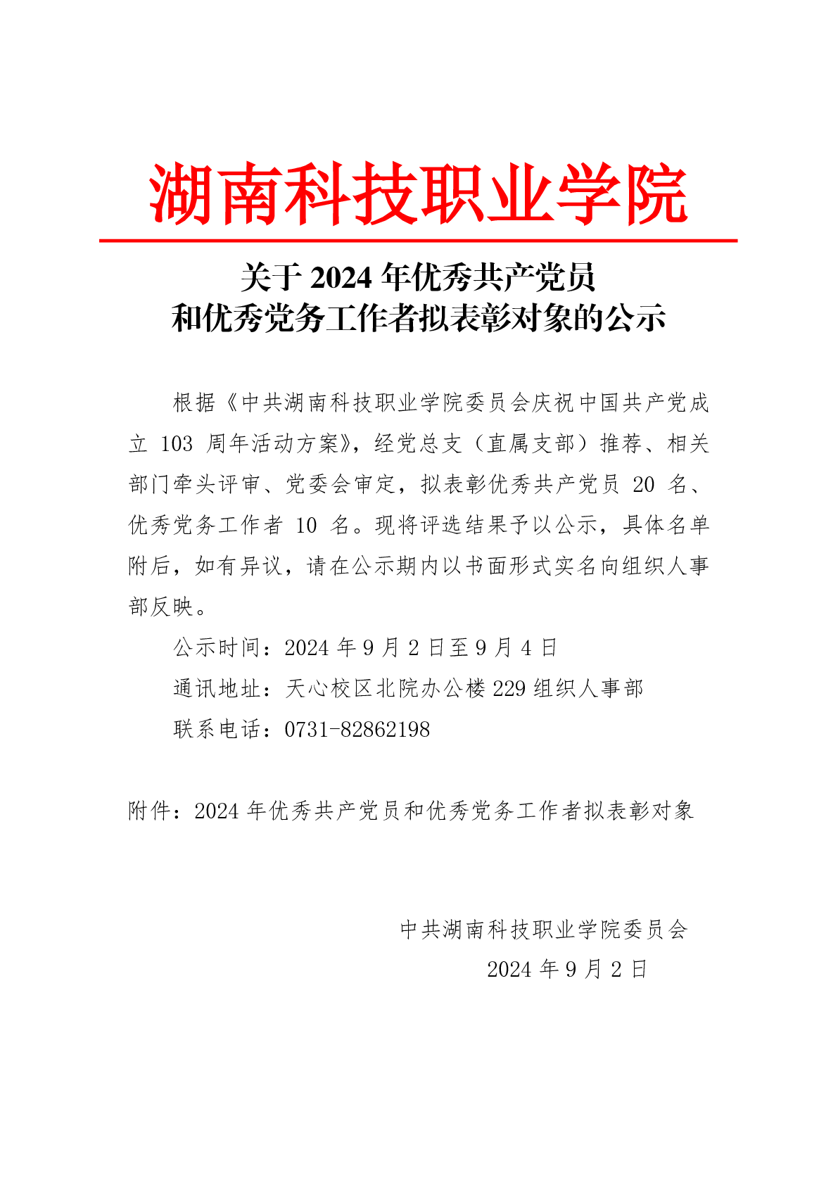 关于 2024 年优秀共产党员 和优秀党务工作者拟表彰对象的公示