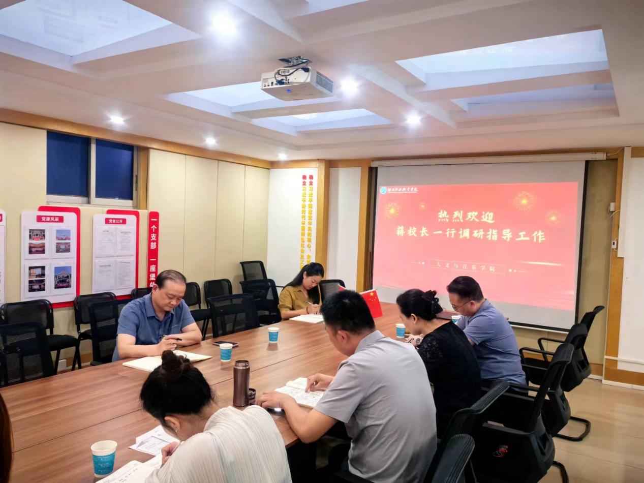 蒋校长在认真听取汇报后,高度肯定了人文与音乐学院在各个方面所作出的成绩,并特别强调了人文底蕴和艺术氛围在大学校园文化建设中的不可替代作用,尤其是音乐与舞蹈等艺术形式对于丰富校园文化生活、提升学生艺术修养的重要意义。蒋校长指出,办好人文与音乐学院是全校师生的共同目标和价值体现,也是推动学校整体发展的重要部分。
