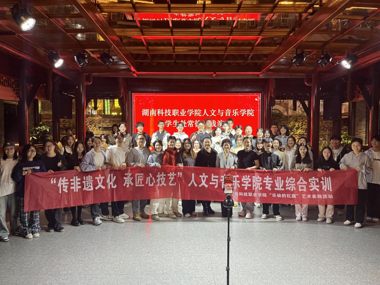 近日,人文与音乐学院2022级学生赴常德圆满完成了为期两周的专业综合实训。此次实训涵盖了音乐课程教学和舞台展演两大板块,注入了国家级非遗项目——常德丝弦、汉剧高腔、常德花鼓戏等传统音乐的学习,以提升学生的专业技能和综合素养为核心目标,为学生们提供了一个全方位、多层次的学习与实践平台,也为非遗音乐的传承与发展注入了青春活力。