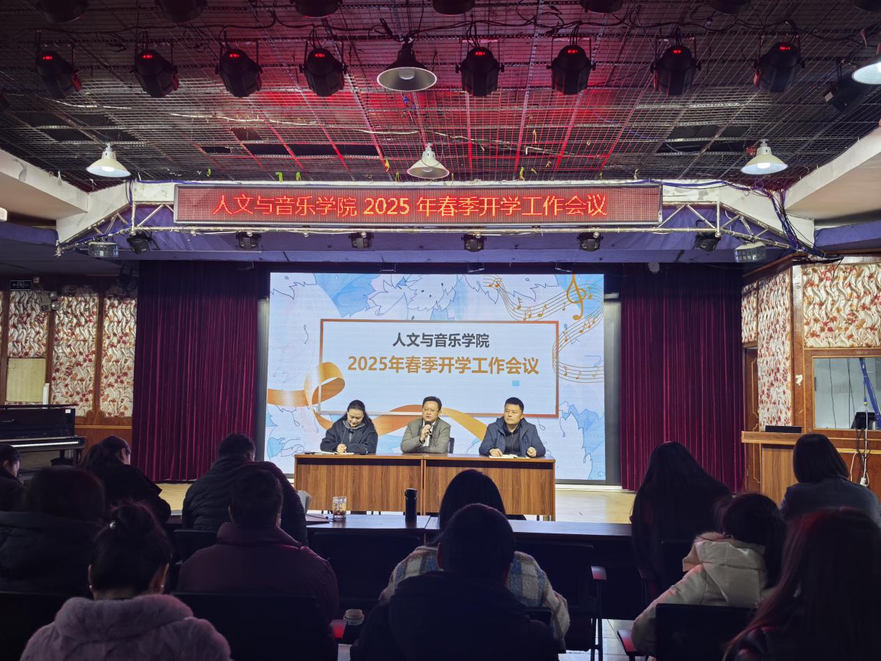 2025年2月14日下午,人文与音乐学院在综八会议室召开了2025年春季开学工作会议。此次会议由刘立专书记主持,许彪校长、胡少林副院长、贺继副书记等学院领导以及全体教师和行政人员参加了会议。