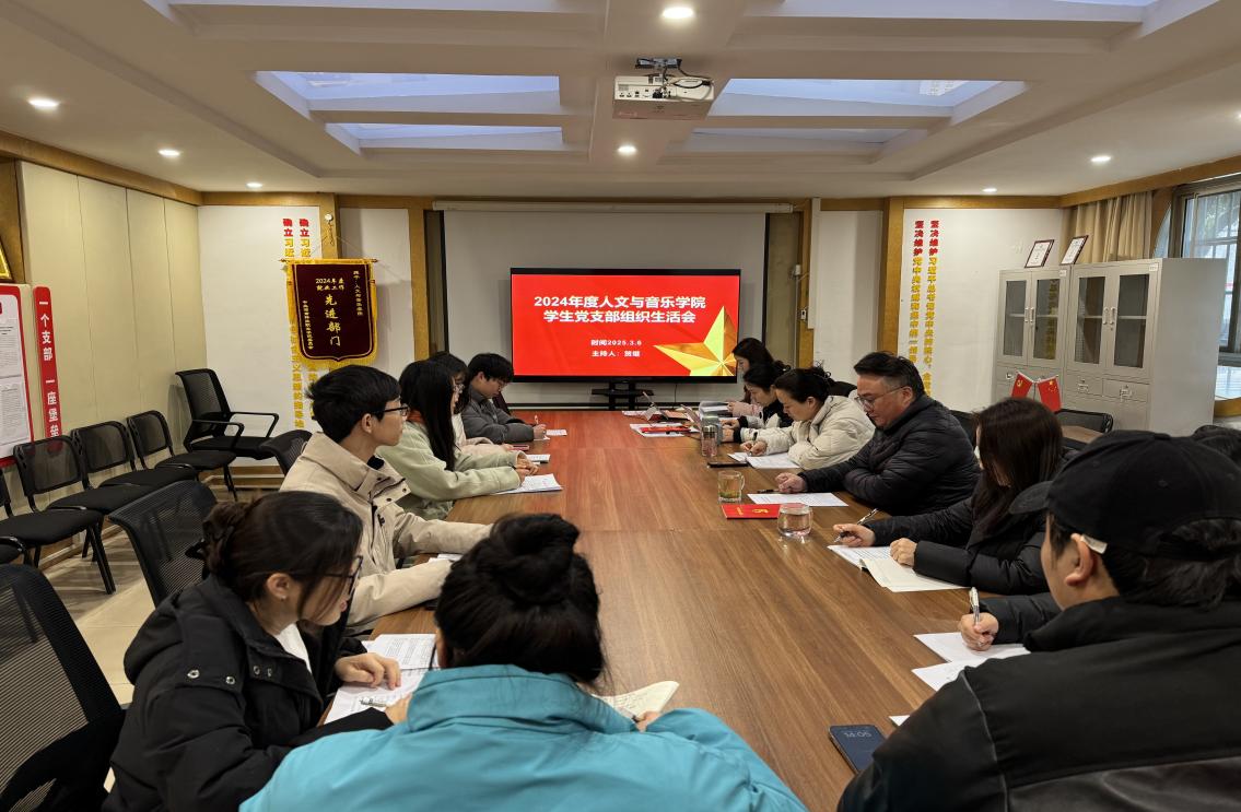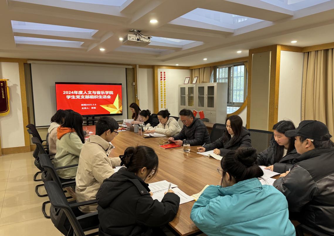 人文与音乐学院学生党支部于2025年3月6日召开了2024年度组织生活会,会议由学生支部书记贺继主持,学生支部全体党员、预备党员参加。
