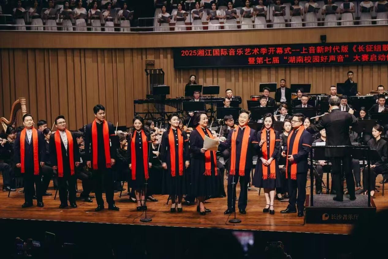 3月17日晚,由上海音乐学院院长廖昌永教授领衔的《长征组歌》红色经典交响音乐会在长沙音乐厅隆重举行。我校人文与音乐学院党总支副书记、副教授贺继老师应邀参加演出,并与廖昌永教授联袂演唱经典曲目《过雪山草地》,为观众带来了一场震撼心灵的音乐盛宴。