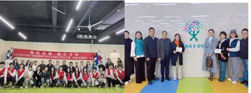 阳春三月,暖意融融,人文与音乐学院党总支携手校企合作企业湖南省鼎新大雅文化传播有限公司,在湖南生命树自闭症儿童关爱中心共同开展了一场别开生面且意义深远的“春风送暖,雅乐合鸣”党建+志愿活动。此次活动将爱心传递与思想教育深度融合,不仅为特殊儿童送去了温暖与欢乐,还为师生党员带来了一场精神的思想洗礼。