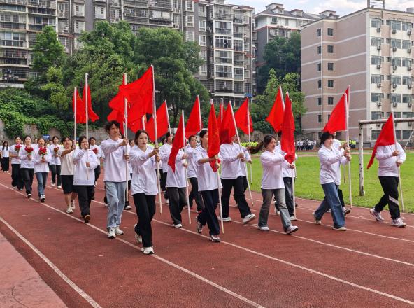 5月24日上午8时,全体师生在田径场“整装待发”。首先,由学院舞蹈队和鼓乐队带来了精彩的热场表演。然后,在威严庄重的国旗护卫队带领下,各个方阵迈着整齐的步伐、喊着嘹亮的口号,依次走过主席台。学生方阵以班级为单位,通过前期精心编排的节目,在队列中充分展示了班级特色与青春风采。