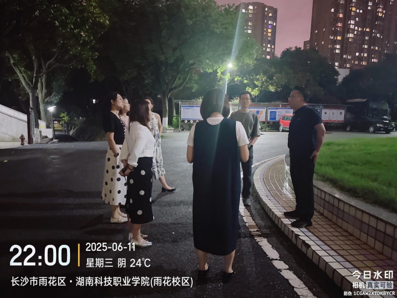 为深入贯彻落实习近平总书记关于安全生产重要论述精神,坚持“管生产必须管安全”的原则,根据《湖南科技职业学院2025年安全生产月活动方案》的要求,将安全生产与禁毒宣传教育深度融合,构建“全员参与、全域覆盖、全程管控”的校园安全治理格局。结合学院实际,2025年6月24日晚上22点30分,人文与音乐学院开展宿舍查安全隐患活动。我院党总支副书记贺继,团总支书记兼学工办主任陈骜,及辅导员张馨尹、熊程怡姜露、陈莉、李国伟老师一同前往宿舍楼进行安全排查。
